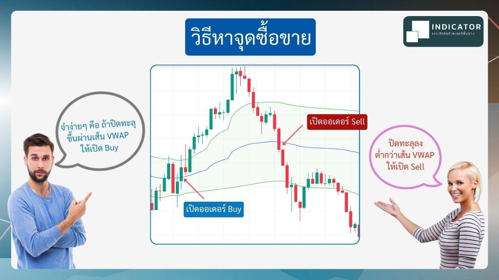 - ราคาปิดต่ำกว่าเส้น VWAP แสดงว่าแนวโน้มเปลี่ยนจากขาขึ้นเป็นขาลง